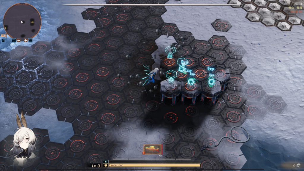 独自の要素(でもないかも)として、ステージ上に配置されているオブジェクト(エネルギーポイント)を破壊することで経験値や資源を手に入れることができる。資源の使い道は後ほど。