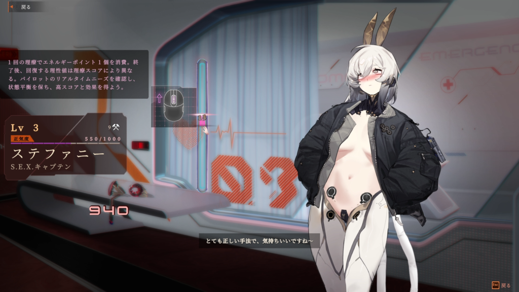 最後までゲージをぶらさずにきもちくしてあげることができればクリアだ!3段階あり、立ち絵も変化する。