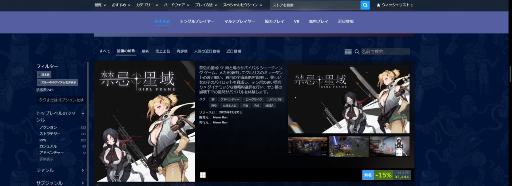 わりとよくある美少女×SFの世界観だろうか。ちょっと気になるしストアページをのぞいてみる