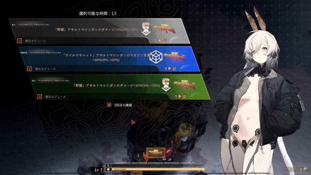 一定数経験値を獲得するとレベルが上がり、武器の強化や武器同士の合成が行える。