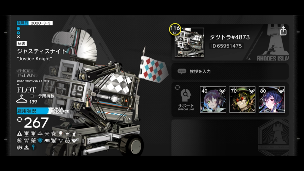 116レベルで止まってたなーとか(120が上限)、ジャスティスナイトを秘書にしてたなーとか。