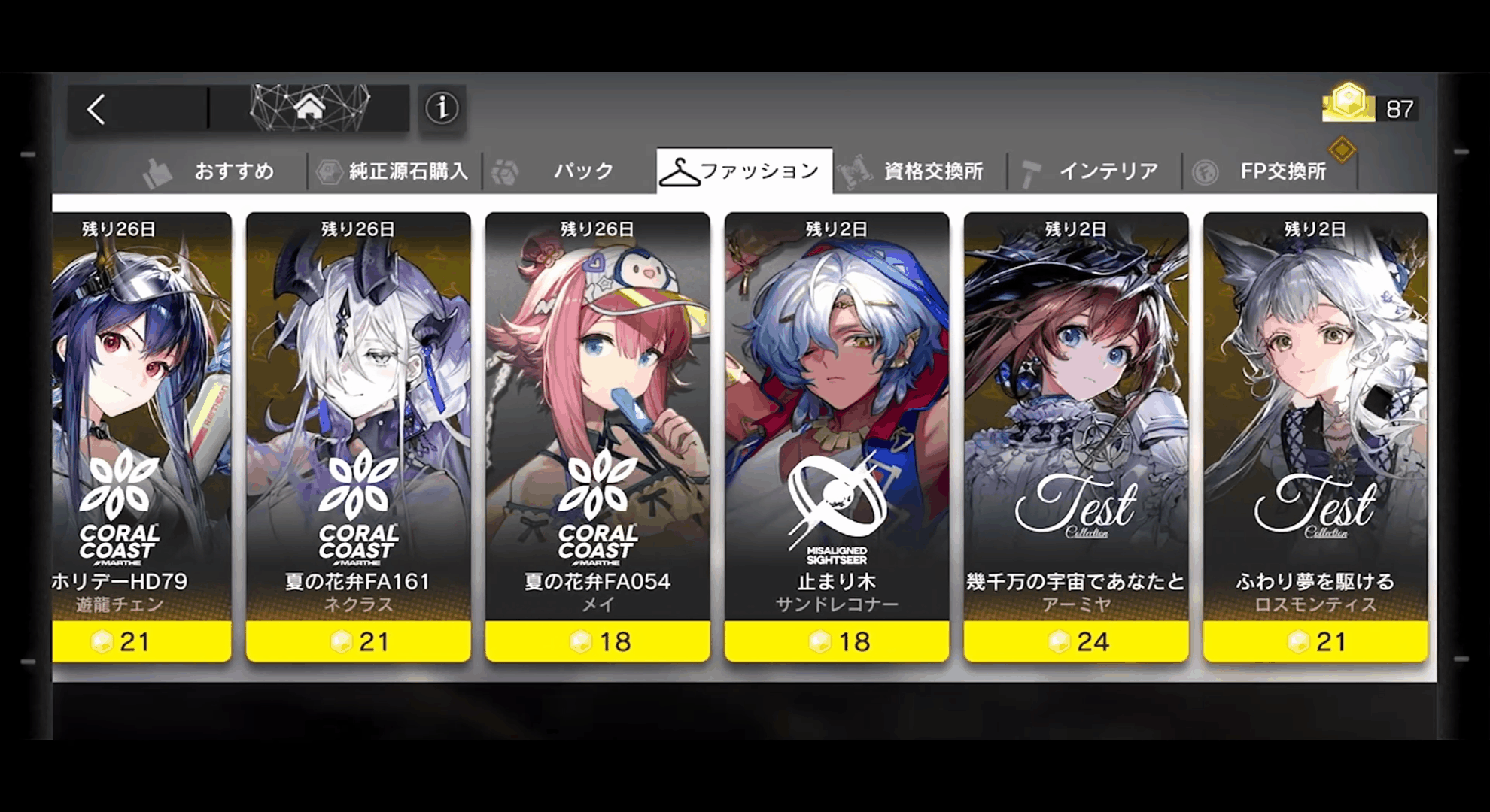 その時その時でおいてる衣装って多くても5,6個だった気がする。こんなの源石がいくつあっても足りないすよ。