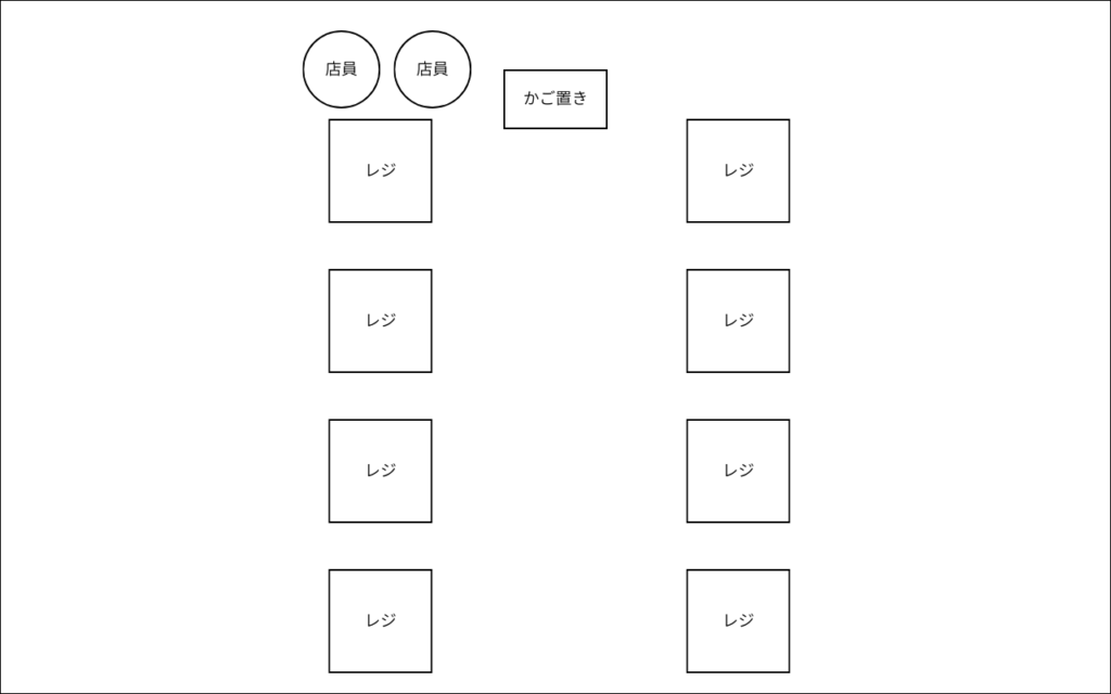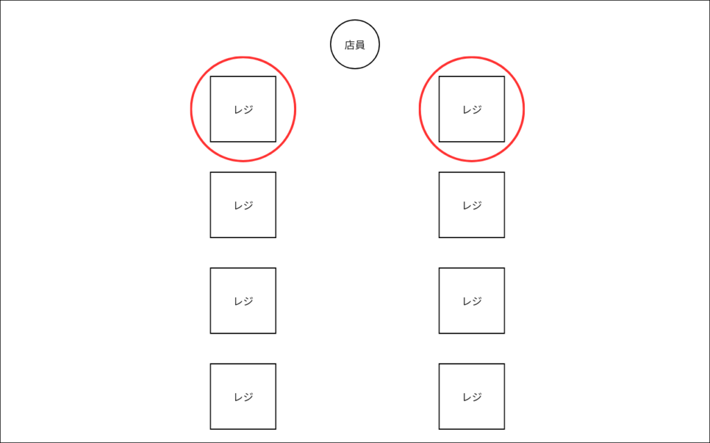 こんな感じになってて、左上のレジを使うときは相当覚悟して挑む必要がある。
